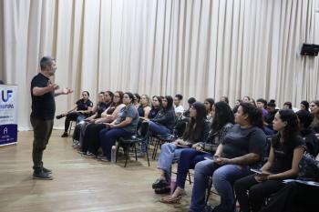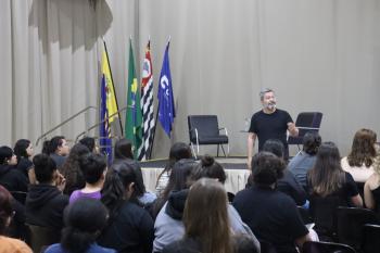 O Centro Universitário Padre Albino/UNIFIPA sediou, no dia 18 de novembro, o lançamento do livro Antes do Carnaval, do escritor Ivan Martucci Forneron, acompanhado da conferência “A experiência poética como lucidez do mundo”. O encontro foi realizado na Sala Movimento e Saúde, no Campus Sede, reunindo estudantes, docentes e interessados em literatura.