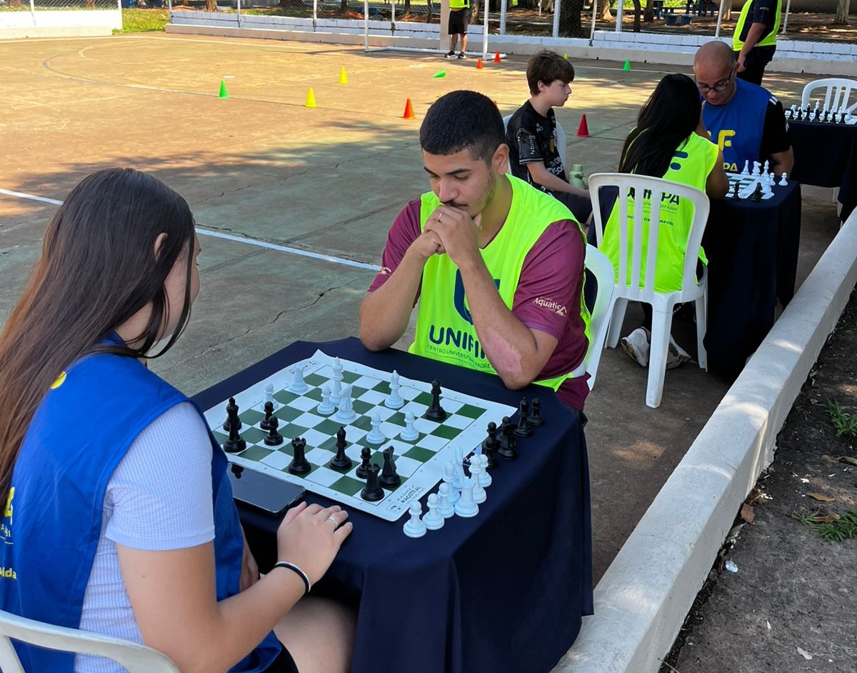 Na manhã deste sábado (22 de novembro) foi realizada a última edição do ano do projeto itinerante “Movimento & Saúde”, promovido pelo curso de Educação Física da Unifipa. Com tendas armadas no Conjunto Esportivo ‘Anuar Pachá’, no Parque Iracema, o evento gratuito ofereceu à comunidade práticas esportivas voltadas ao bem-estar, como alongamento, jogos coletivos e ginástica, além de exames de glicemia e aferição de pressão arterial realizados com a colaboração do curso de Biomedicina. Os usuários do parque participaram das atividades com orientação profissional dos alunos e professores da Unifipa.