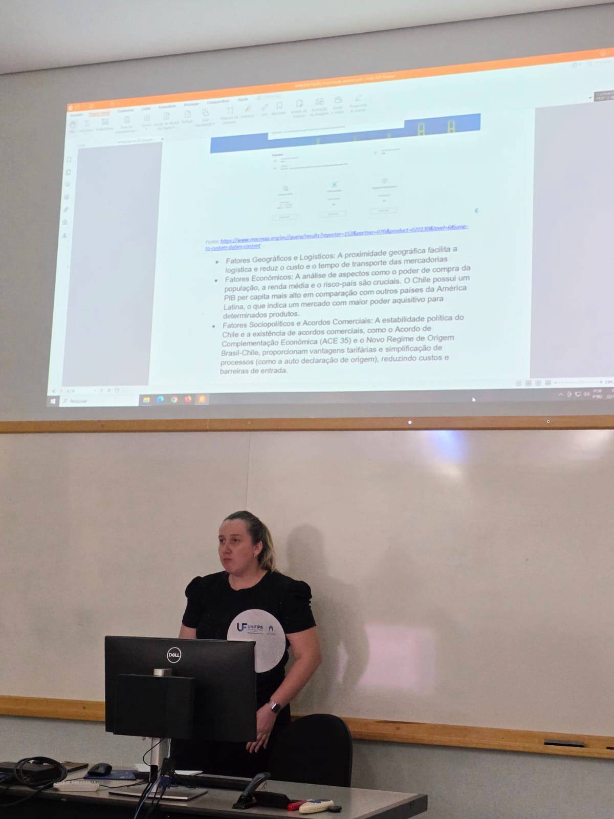 O encerramento foi marcado pela apresentação de Projeto de Internacionalização. Cada aluno escolheu um produto brasileiro e um país-alvo, desenvolvendo plano detalhado de exportação. Os projetos incluíram análise de incentivos governamentais, taxas e barreiras comerciais, formação de preço internacional, logística global, seguros, avaliação de riscos e estratégias culturais, etapas que permitiram aos participantes aplicar, na prática, os conhecimentos adquiridos.