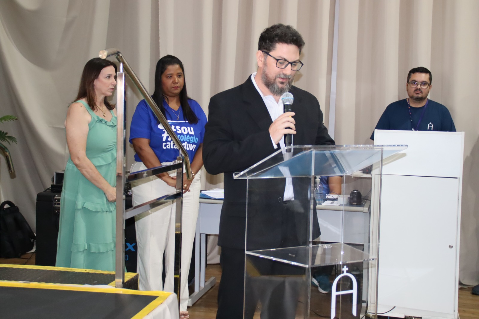 A cerimônia foi conduzida pela diretora do Colégio, Profa. Ma. Fabiana Fiorim Checconi, que destacou o empenho dos alunos ao longo do ano letivo e agradeceu o apoio das famílias e ressaltou a missão institucional da escola. “O Colégio Catanduva tem como missão contribuir para a formação dos alunos, promovendo o desenvolvimento pessoal, intelectual e cultural. Reforçamos também os valores da Fundação Padre Albino, como comprometimento, profissionalismo, trabalho em equipe e transparência. Hoje celebramos o sentimento de missão cumprida e o aprendizado adquirido, que acompanharão os alunos nos próximos desafios acadêmicos”, afirmou.