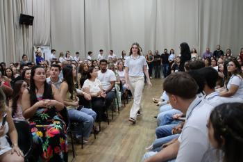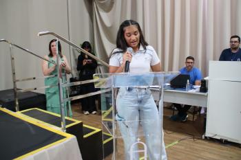 A estudante Isabelle da Silva Santos representou os formandos em discurso que rememorou momentos significativos vividos pela turma ao longo da trajetória escolar. “Lembramos de quem nos guiou, de quem acreditou no nosso potencial, mesmo quando a gente duvidava de nós mesmos. Lembramos dos conselhos, das broncas necessárias, das risadas no meio da aula e daquele olhar de ‘vai dar certo’ que só os professores têm”, declarou.