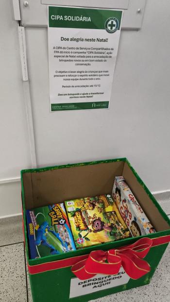 A Comissão Interna de Prevenção de Acidentes (CIPA) do setor administrativo – Centro de Serviços Compartilhados da Fundação Padre Albino – promove a campanha ‘Natal Solidário – Doe alegria’, iniciativa que mobilizou colaboradores na arrecadação de brinquedos novos e usados em bom estado.