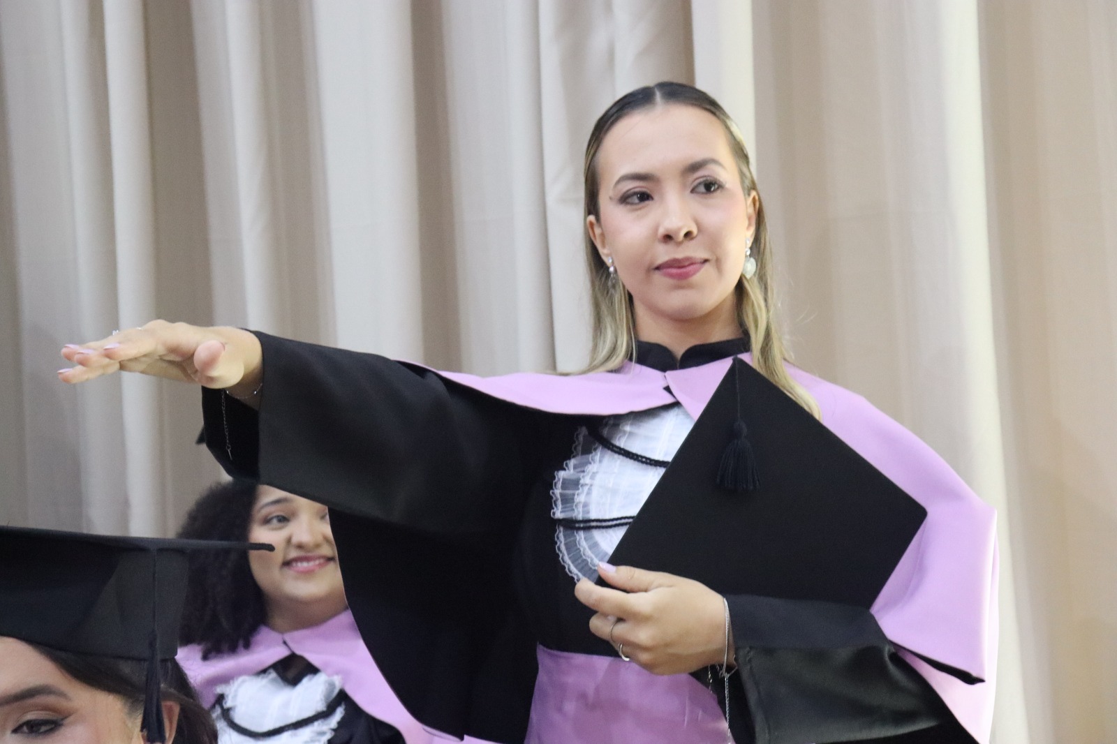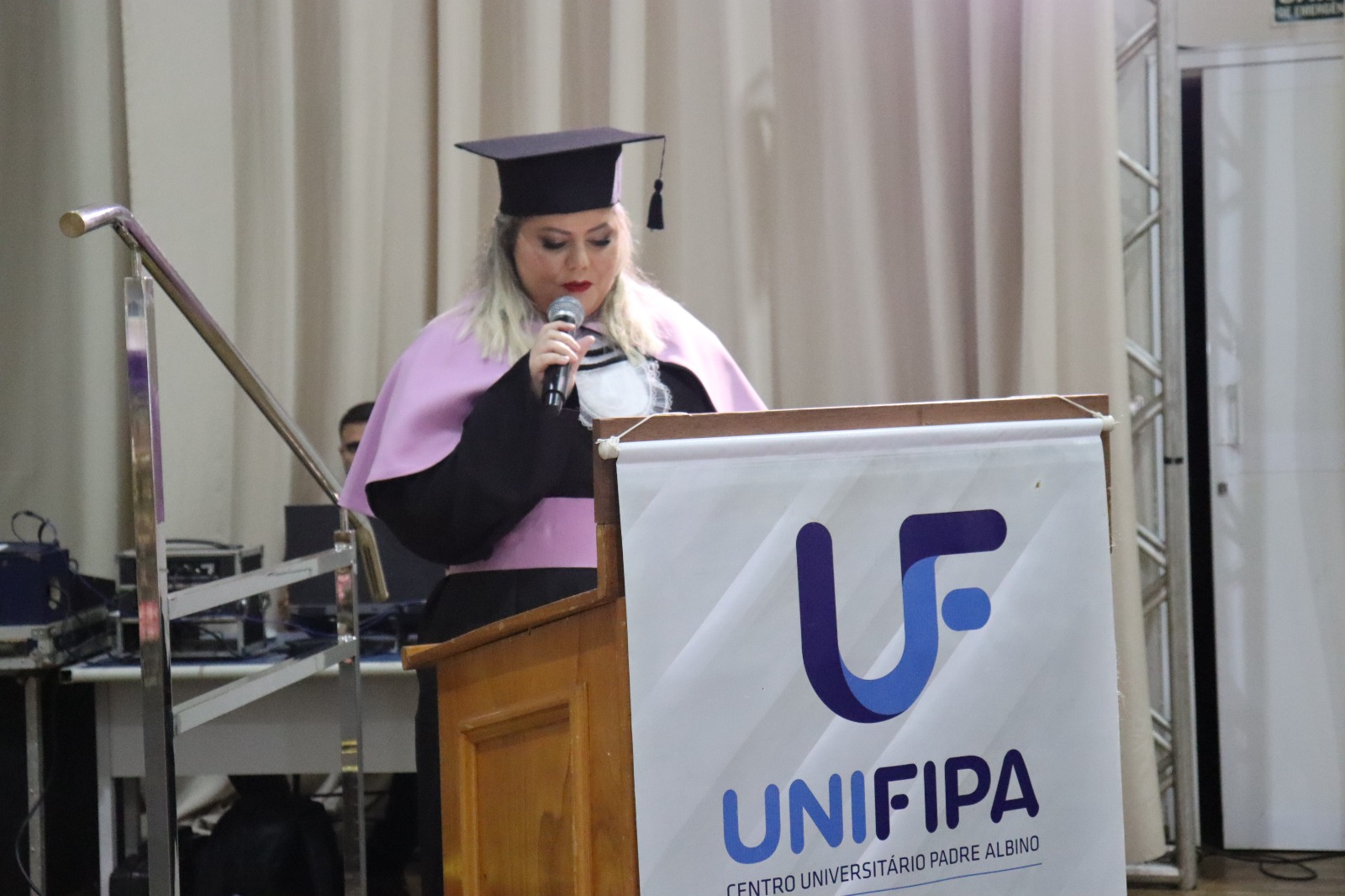 A formanda Luana Zanini Rodrigues, oradora da turma, dirigiu mensagem aos pais, professores e colegas. O juramento foi conduzido pela formanda Thaiana da Silva. Representando o reitor da UNIFIPA, Dr. Nelson Jimenes, a pró-reitora de Ensino de Graduação, Extensão, Assuntos Comunitários e EAD, Profa. Dra. Andréia de Haro Moreno, outorgou grau aos novos pedagogos. Na sequência, a paraninfa e a patronesse entregaram as declarações aos formandos.