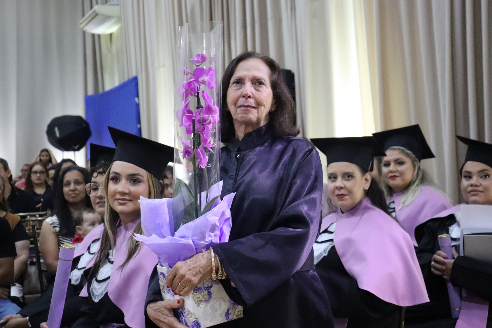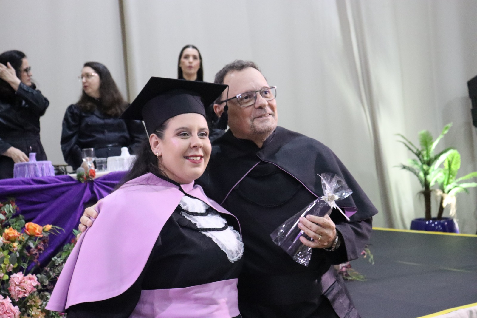 Ao final da cerimônia, os formandos prestaram homenagens aos docentes, oferecendo pequenos mimos em reconhecimento à trajetória compartilhada ao longo do curso. Houve ainda homenagem especial à professora especialista Dirce Aparecida Gimeniz, pelos anos de dedicação ao curso de Pedagogia da UNIFIPA.