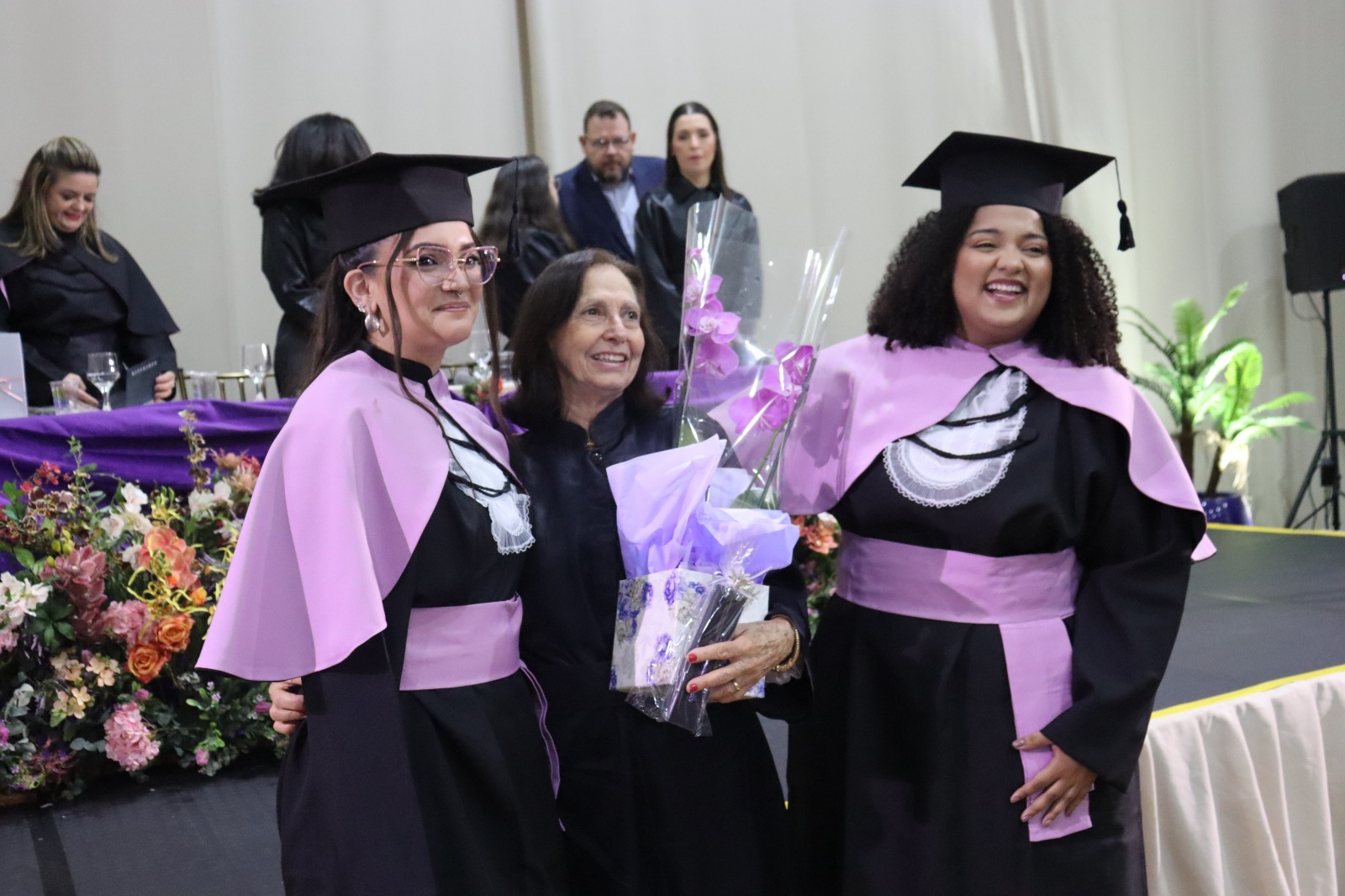 Participaram da solenidade os docentes Profa. Esp. Dirce Aparecida Gimeniz, Profa. Ma. Eunice Aparecida de Aguiar Alonso, Profa. Ma. Fabiana Fiorim Checconi, Profa. Dra. Gabriela Lanza Porcionato, Prof. Me. José Claudinei Cordeiro, Profa. Ma. Leiriani Abreu, Prof. Me. Lucas Cesar Munhoz e Prof. Esp. Sérgio Ricardo dos Santos.