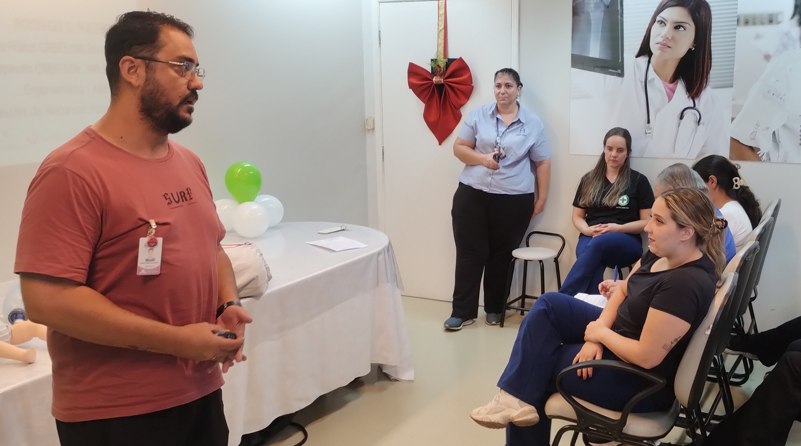 William conduziu a ação de abertura, no dia 8, com o tema “Primeiros Socorros – AHA American Heart Association 2025”, reforçando a importância do preparo para situações de emergência. No mesmo dia, o educador físico do Grupo de Apoio ao Trabalhador da Fundação Padre Albino, Rodrigo Sebastião Matheus, abordou a “Ergonomia Emocional – cuidar do ambiente e das emoções”, destacando a relação entre bem-estar emocional e desempenho profissional.