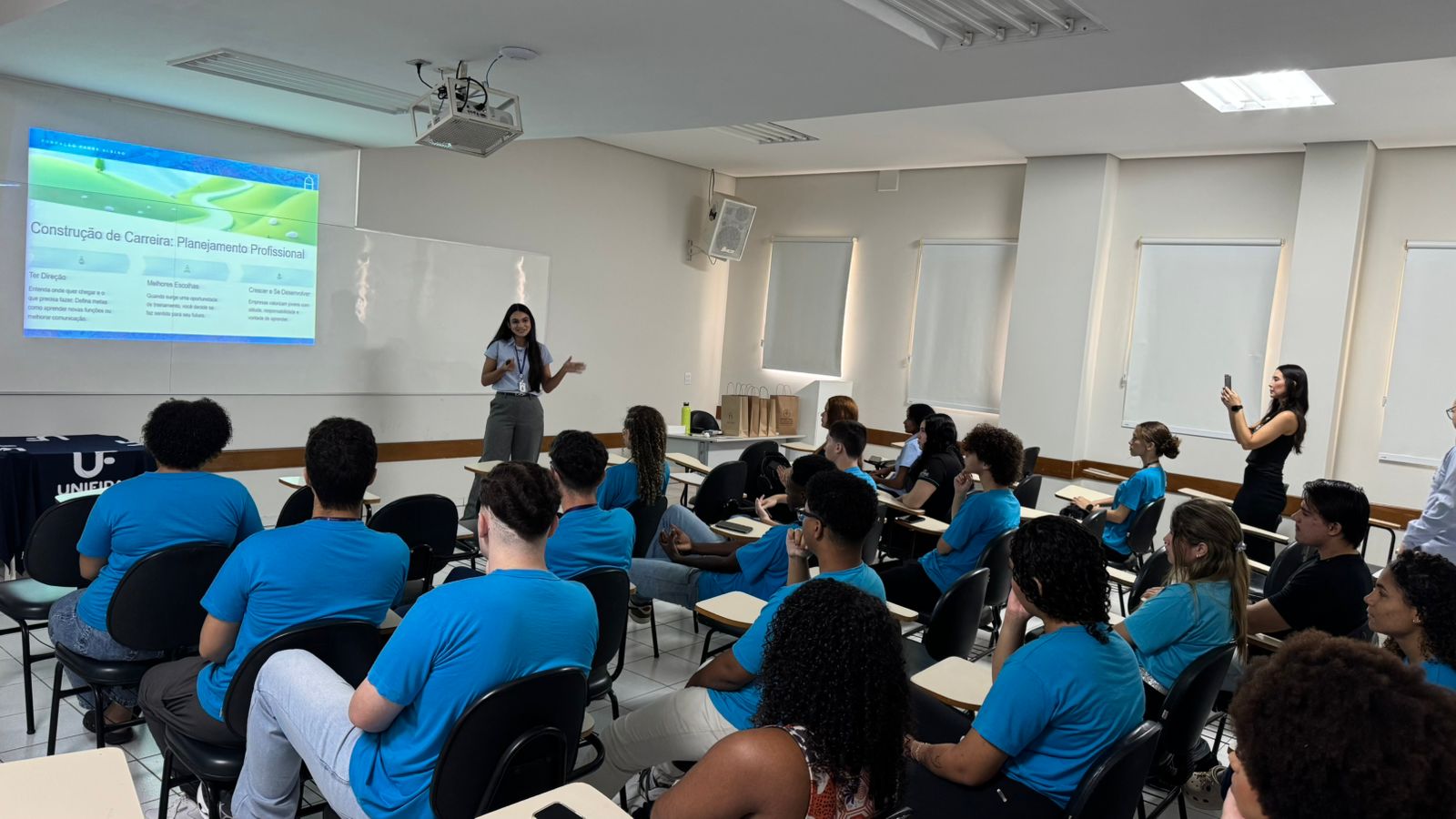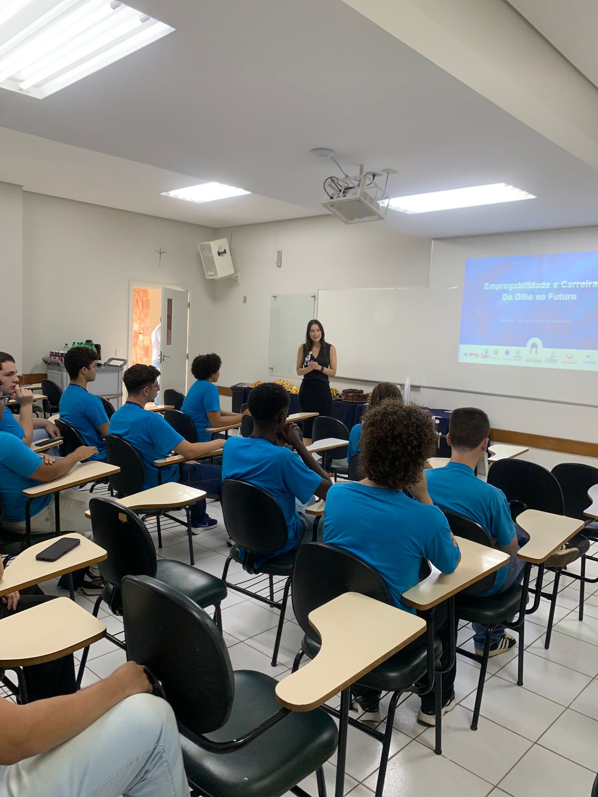 Os jovens assistiram a palestra ministrada pela equipe do Núcleo de Educação Permanente, com foco na empregabilidade, carreira e construção profissional, proporcionando reflexões importantes sobre o mercado de trabalho, o planejamento do futuro profissional, além de aproximá-los de exemplos reais de crescimento na própria instituição.
