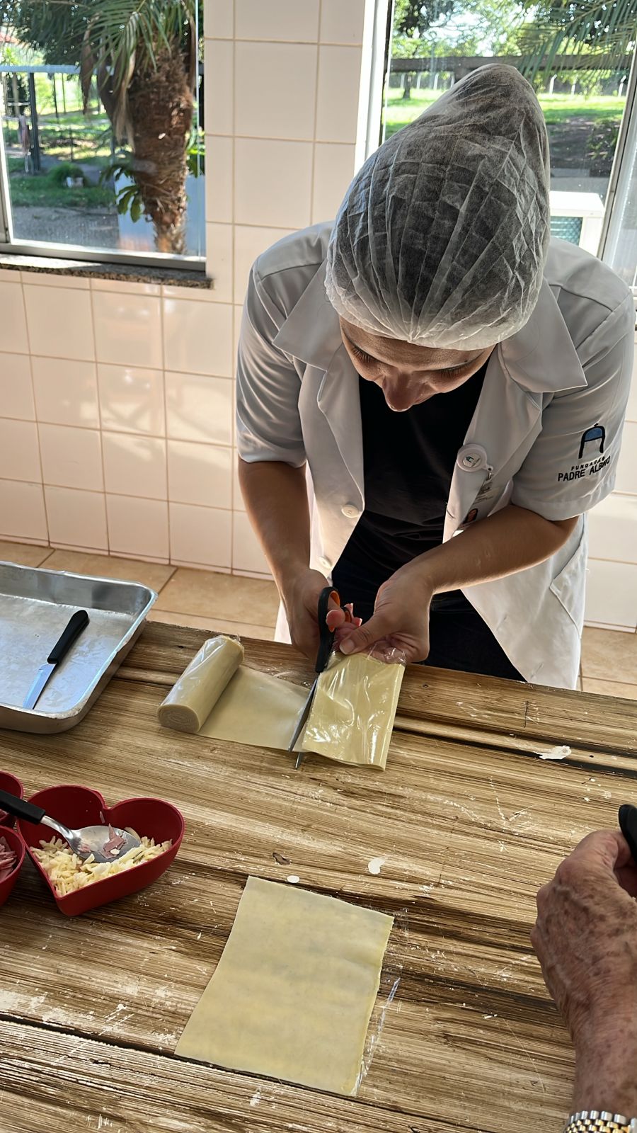 O Recanto Monsenhor Albino promoveu, no dia 20 de janeiro, no refeitório da instituição, oficina de culinária de pastel com as pessoas idosas acolhidas. A atividade teve como foco estimular a autonomia, a convivência e a participação ativa dos residentes.