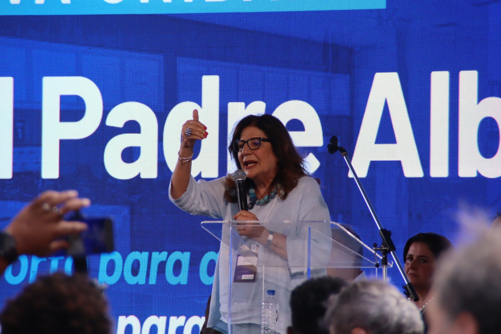 A diretora acrescentou que Catanduva “recebeu sua primeira semente através de uma obra erguida por doadores iguais a vocês que estão aqui hoje. O apoio de vocês atravessa gerações. Pelas mãos de nosso saudoso fundador, o Venerável Padre Albino, este hospital nasceu de um gesto de fé. Ele não tinha recursos públicos abundantes, mas tinha a doação de quem acreditava que a saúde é um direito sagrado.” Para ela Padre Albino “nos ensinou que a filantropia não é apenas dar o que sobra, é construir o que é necessário com o esforço de todos. Ele costumava dizer: 'A caridade não pode parar'. E esta nova unidade é a nossa forma de garantir que ela jamais pare." Finalizando, disse que o novo Pronto Atendimento e Centro de Diagnósticos “são frutos dessa mesma árvore. É importante destacar: esta obra foi realizada com recursos próprios da Fundação Padre Albino, com o apoio do BNDES.”