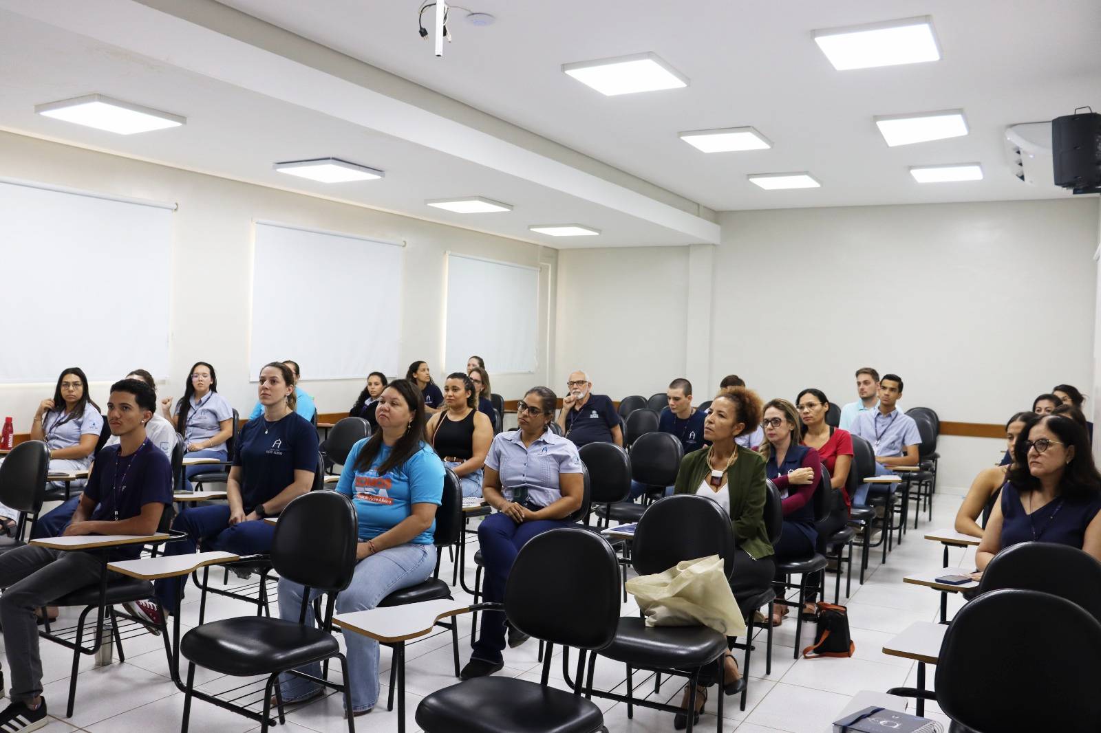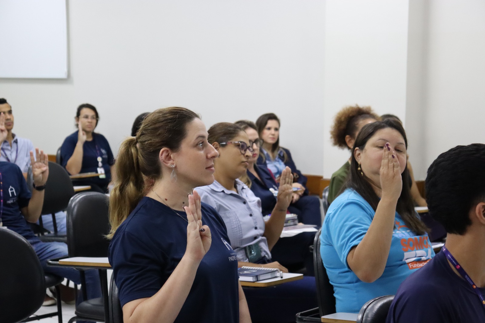 Nesta primeira aula, a professora apresentou aos participantes o alfabeto em LIBRAS e orientou sobre as formas iniciais de comunicação na língua de sinais. As atividades incluem conteúdos introdutórios que permitem aos colaboradores conhecer os fundamentos da comunicação com pessoas surdas.