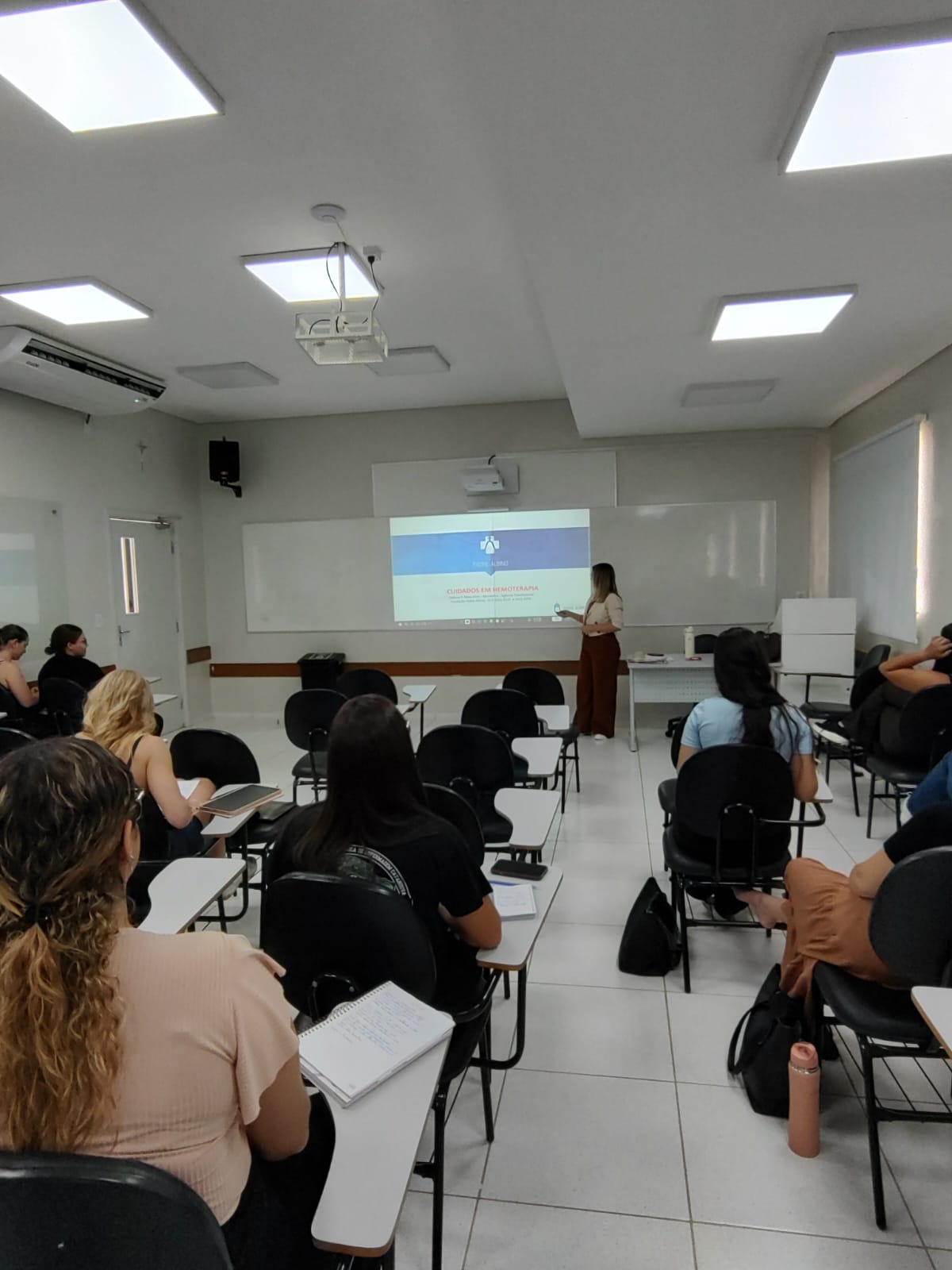 No último dia 6 de março, alunos do 4º ano do curso de Enfermagem da UNIFIPA participaram de atividade formativa voltada à prática profissional na área de Hemoterapia. A palestra foi ministrada pela biomédica Débora Ribas Diniz, coordenadora das agências transfusionais, responsável pelo Serviço de Hemoterapia dos hospitais da Fundação Padre Albino.