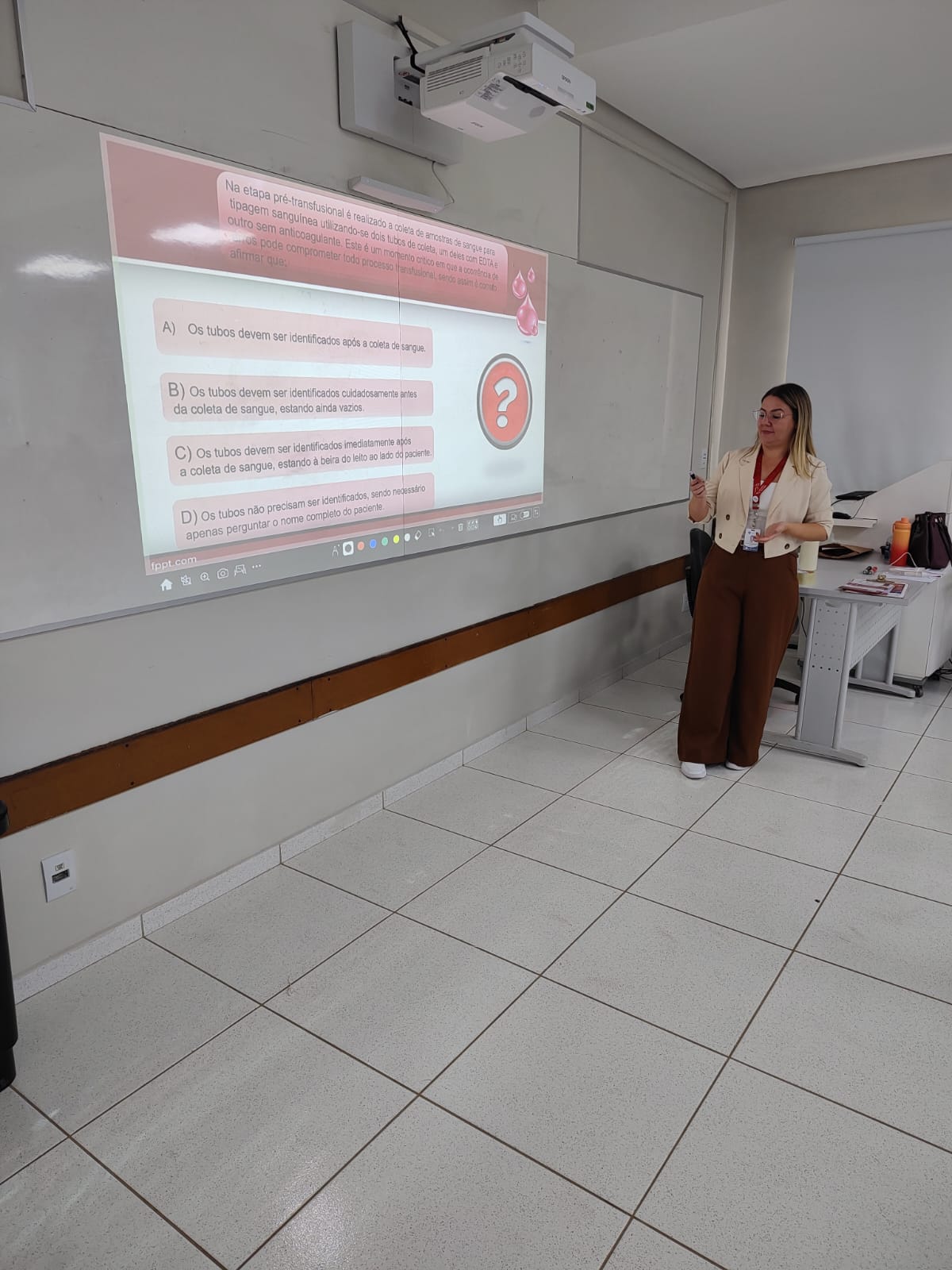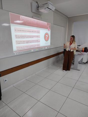 Durante o encontro, que uniu conteúdo teórico e momentos de dinâmica prática, a biomédica abordou o papel estratégico do enfermeiro nos cuidados relacionados à hemoterapia, destacando a importância da segurança, da precisão técnica e do cumprimento rigoroso dos protocolos durante os procedimentos transfusionais. A iniciativa contou com a participação da Profª Me. Marina Ferreira Caiuby, docente do curso de Enfermagem da UNIFIPA, fortalecendo a integração entre a prática hospitalar desenvolvida nos hospitais da FPA e a formação acadêmica dos futuros profissionais de saúde.