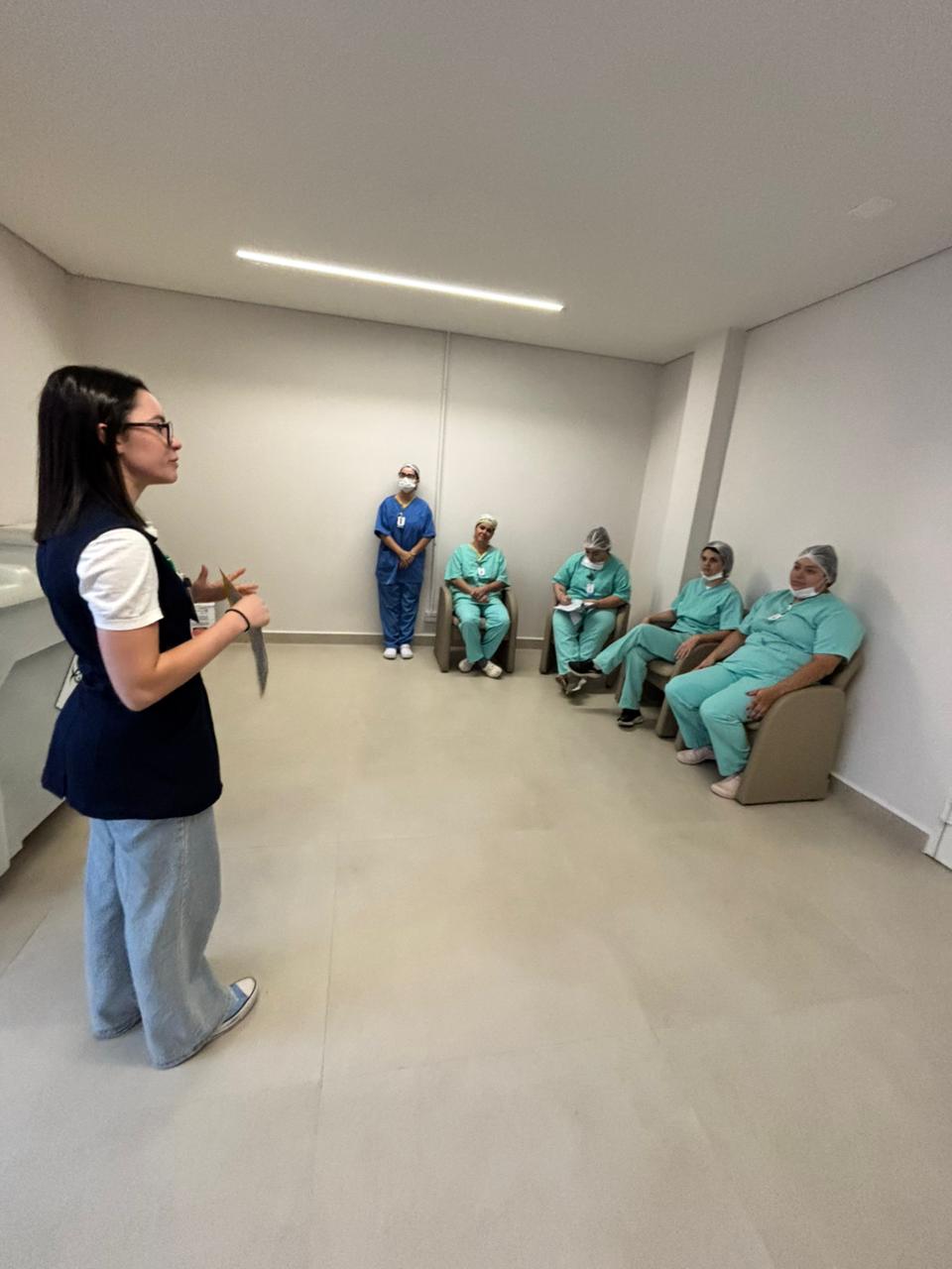 Nos dias 23 e 24 de março, os profissionais de enfermagem do Hospital Padre Albino participaram de capacitação sobre prevenção e identificação de flebite, inflamação geralmente superficial que atinge as veias, caracterizada por dor, vermelhidão, calor local e endurecimento do trajeto venoso, com maior incidência em membros superiores e inferiores. Segundo a enfermeira Kayalem Vaccari, representante do Núcleo de Segurança do Paciente do HPA, a iniciativa teve como foco a atualização técnico-científica da equipe, além de promover a integração entre os colaboradores e fortalecer práticas seguras no manejo de acessos venosos periféricos.