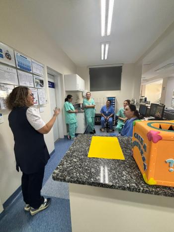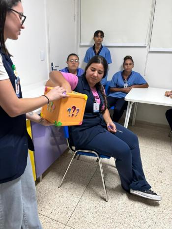 Após a etapa teórica, fundamentada no protocolo institucional, os participantes foram envolvidos na dinâmica “caixa surpresa”, na qual sorteavam materiais para discussão. A atividade incluiu imagens, casos clínicos e perguntas norteadoras, estimulando o raciocínio crítico quanto à identificação precoce da flebite e às condutas adequadas. Os conteúdos abordados ofereceram subsídios importantes para a padronização dos cuidados, adoção de condutas assertivas e reconhecimento precoce de sinais da complicação, impactando diretamente na redução de riscos e no fortalecimento da segurança do paciente dentro das dependências do hospital.