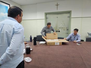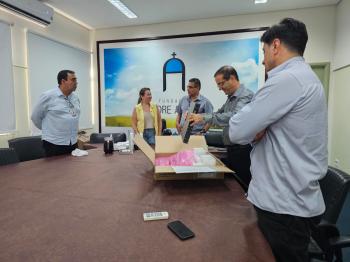 Durante a entrega estiveram presentes, além de Ronaldo Delalibera, a diretora de Recursos Humanos, Débora Eli Maiévis, o supervisor de Infraestrutura de Rede, Vagner Alves Ferreira, e o gerente de Captação de Recursos, Julio Cesar Luiz.