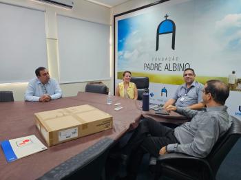 A Fundação Padre Albino (FPA) recebeu, no dia 9 de abril, a doação de um switch de rede feita por José Mauro da Silva, proprietário da JP Informática. O equipamento será incorporado à estrutura tecnológica da FPA, contribuindo para a ampliação e modernização da rede interna de computadores e dispositivos conectados.