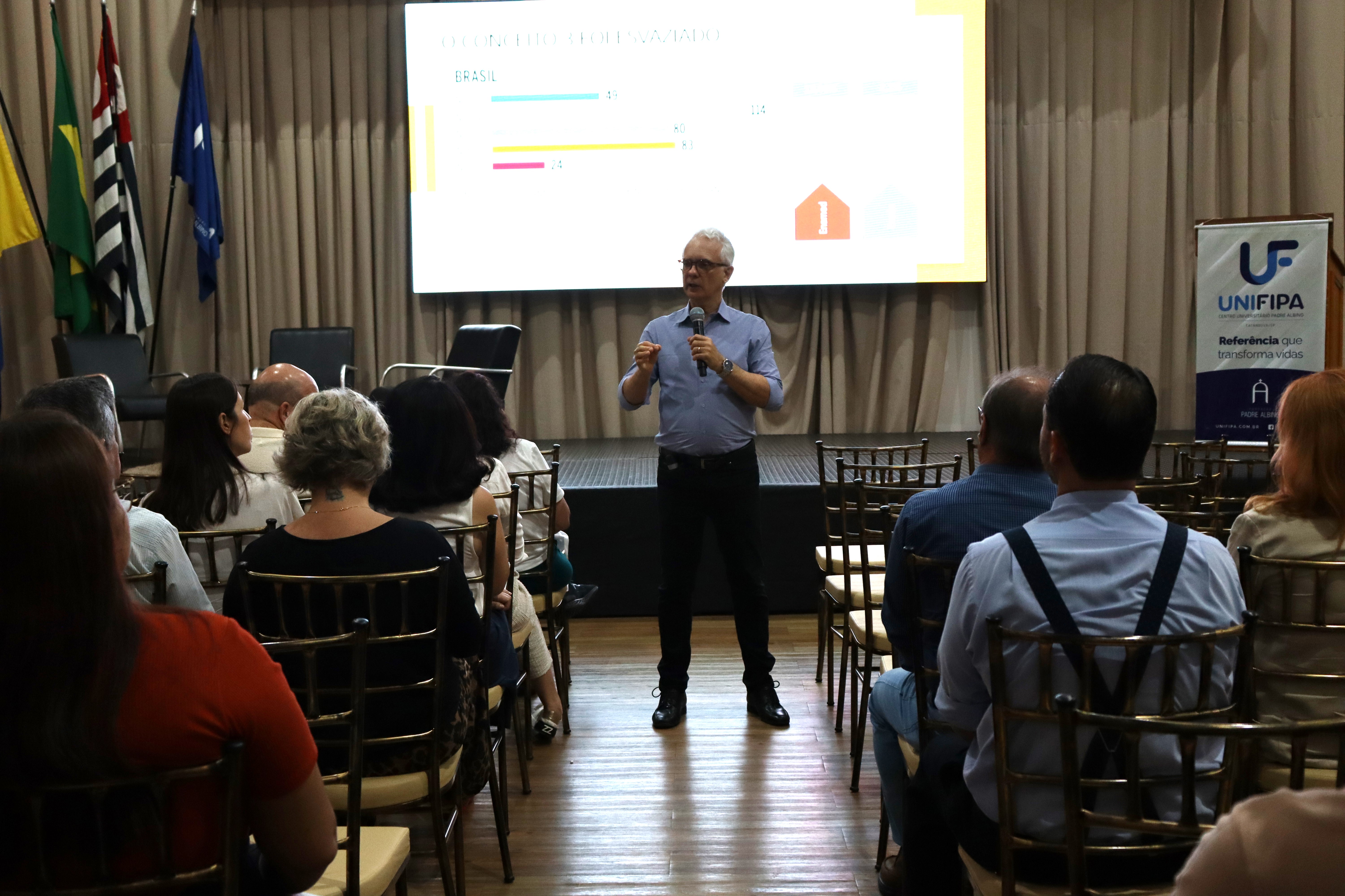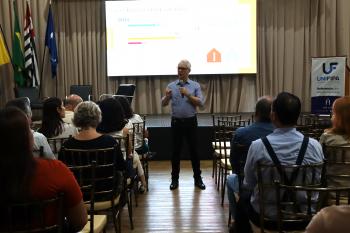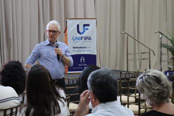 Coordenadores de curso e membros do Núcleo Docente Estruturante (NDE) da Unifipa participaram, nesta quarta-feira (22), de treinamento de formação continuada em gestão da aprendizagem. A atividade foi conduzida pelo Dr. Alexandre Nicolini, especialista na construção de políticas públicas de avaliação do ensino superior desde 1996, com ampla experiência no desenvolvimento de metodologias de trabalho e programas de formação para Instituições de Ensino Superior.