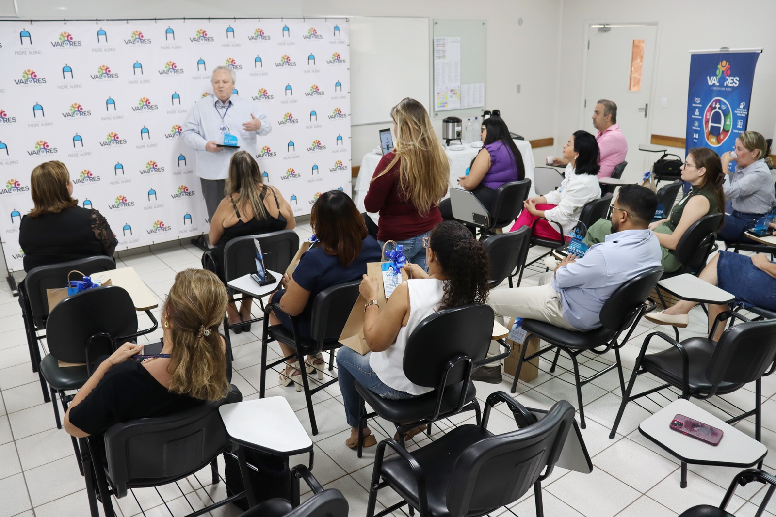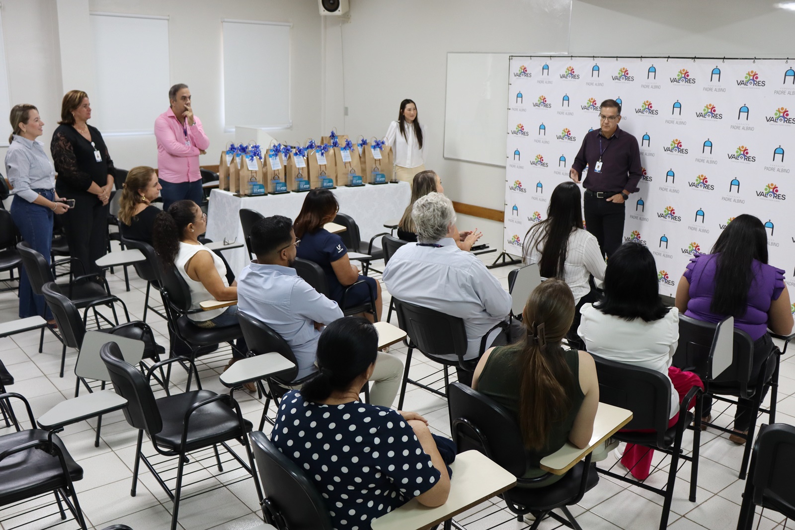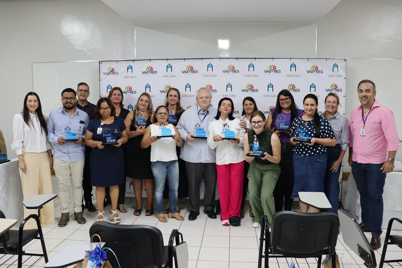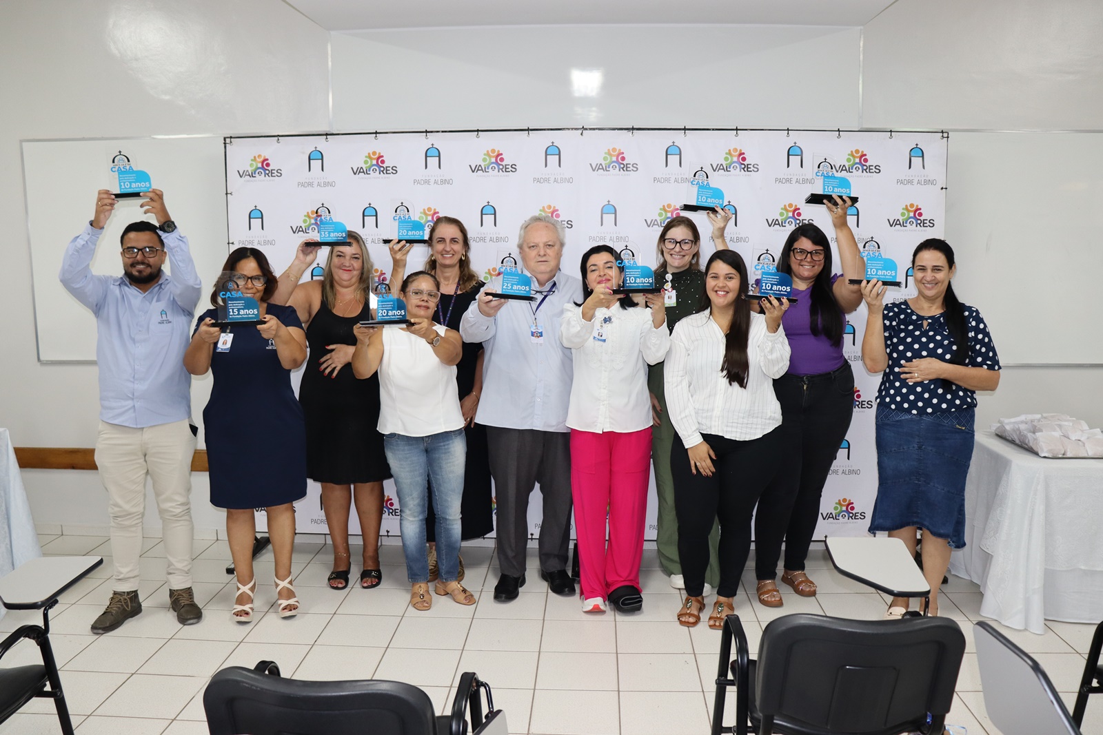 A Fundação Padre Albino segue com a homenagem a seus colaboradores pelo tempo de serviço prestado nas unidades. O “Aniversário de Tempo de Empresa” foi realizado na manhã da última quarta-feira, 22 de abril, entregando o troféu “Você já é de casa” para 11 colaboradores que completaram de 10 até 35 anos de tempo de serviço no mês de abril.