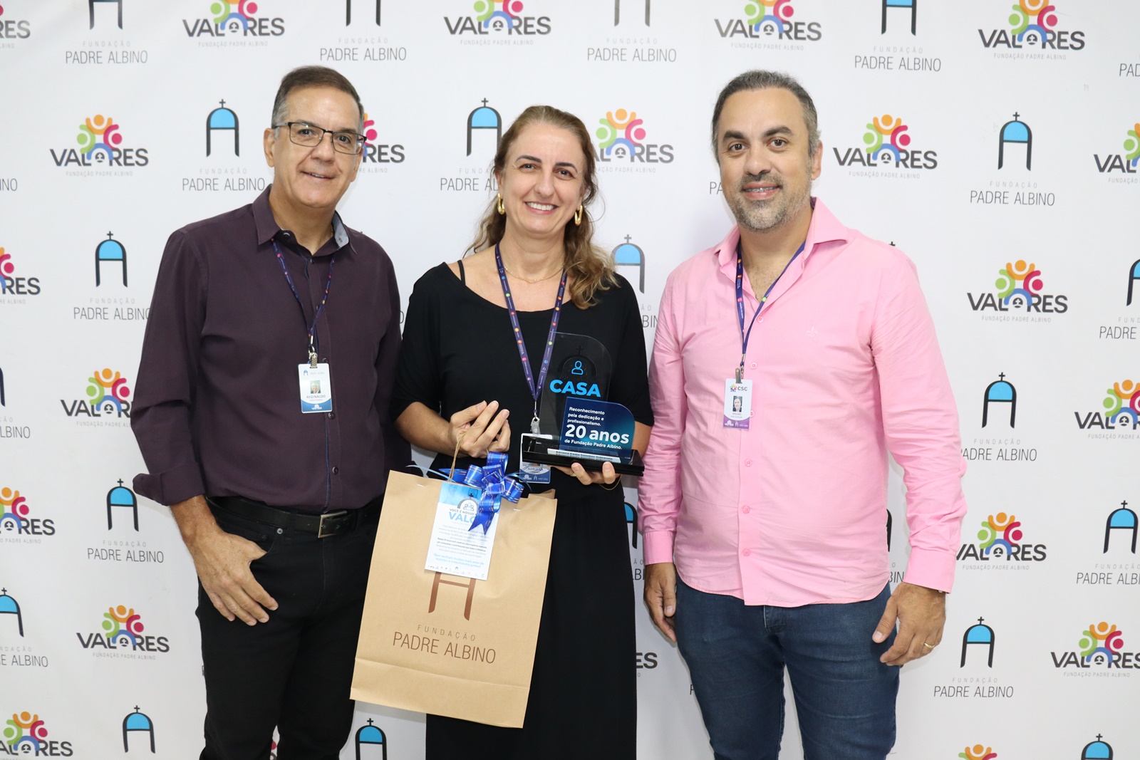 Receberam as homenagens os colaboradores: 10 anos: Ronaldo Pereira S. Junior (analista financeiro); Zumeire Martins Yukawa (técnico em Enfermagem); Ariane Fernanda Sanches (enfermeira coordenadora); Letícia de Cássia Belchior (enfermeira); Joyce Isabela Froelich (fisioterapeuta); e Jennifer Nayra Baldassarini (técnica em Enfermagem). 15 anos: Sandra Célia H. Oliveira (assistente administrativa). 20 anos: Adriana Paula Sanches Schiaveto (docente); e Rosinete Lopes Araujo (auxiliar de serviços gerais). 25 anos: Jorge Luis dos Santos Valiatti (médico). 35 anos: Adriana Lázaro Gonçalves (técnica em Enfermagem)
